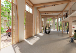 L’usage du bois, ses combinaisons avec le verre, et la mise en œuvre de brique de terre crue en remplissage dans une écriture architecturale résolument contemporaine sont l’occasion de requestionner les méthodes constructives actuelles au regard des savoir-faire et de filaires de production ancrés dans l’histoire et le patrimoine rennais, mais également ouvert sur les développements et l’innovation.