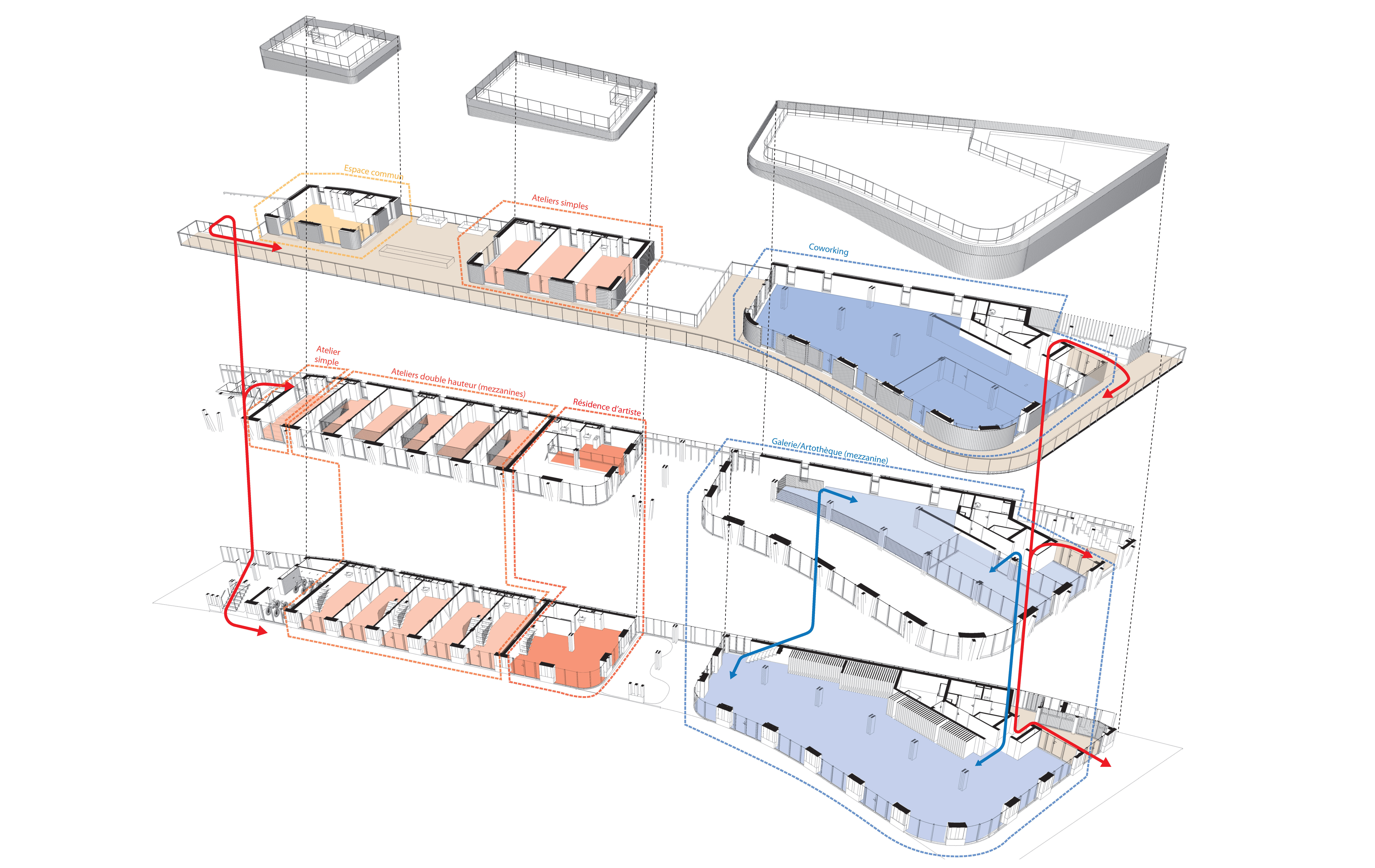 Arthotèque, ateliers artisants + artiste, coworking et passerelle